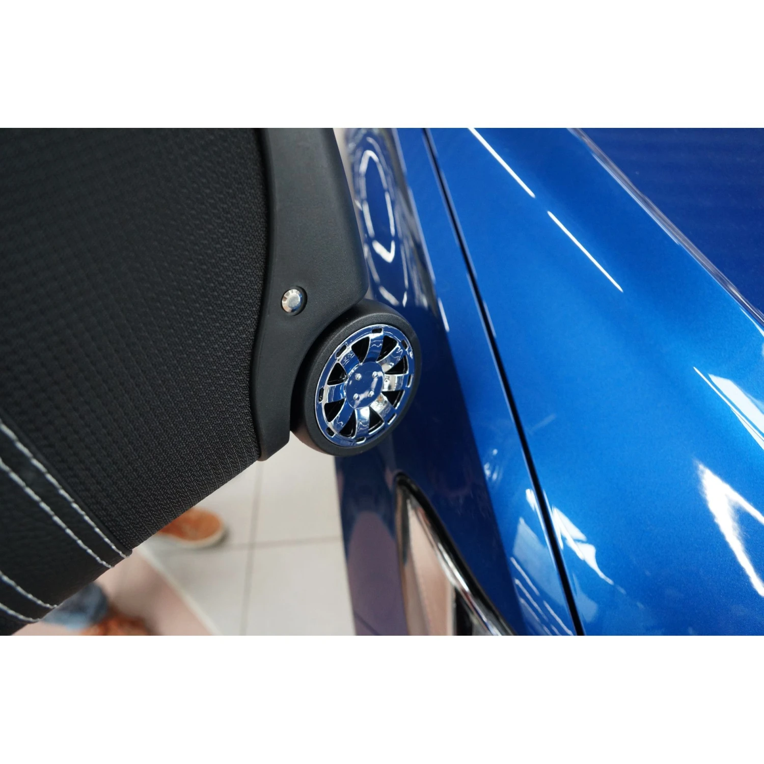 Das ausziehbare Trolley-System aus Aluminium wird durch edle, verchromte Speichenfelgen ergänzt. Diese rollen auf hochwertige Kugellagern und breiten Reifen.