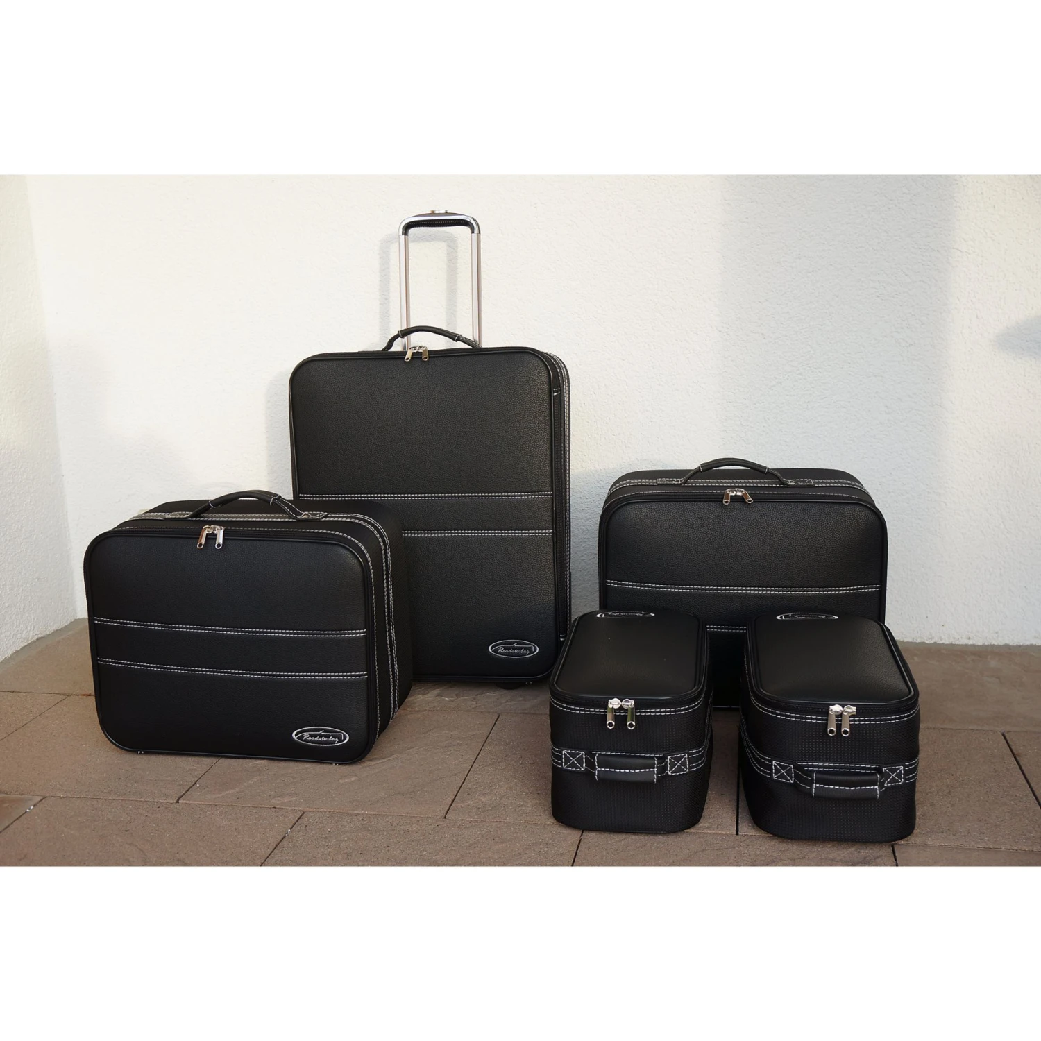 Sie möchtem mit geöffnetem Fahrzeugdach auf Reisen gehen und dabei dennoch nicht am Gepäck sparen? Das edle fünfteilige Kofferset für das Mercedes E-Klasse Cabrio (A207) bietet jede Menge Stauraum und ist perfekt auf Optik und Maße Ihres Wagens ausgelegt. Ein geräumiger Trolley, zwei zusätzliche Koffer und zwei passende Reisetaschen lassen sich auch außerhalb des Kofferraums komfortabel transportieren – dank bequemer Tragegriffe und einem stabilen Trolley-Rollensystem. Die erstklassige Verarbeitung, handgefertigt in der EU, und ein hochwertiges Innenfutter aus edler Ancarra-Mikrofaser garantieren zudem einen stilsicheren und eleganten Auftritt. Die exakte Passform der Koffer gewährleistet, dass die empfindliche Dachsensorik nicht gestört wird, damit es nicht zu Fehlfunktionen kommt!