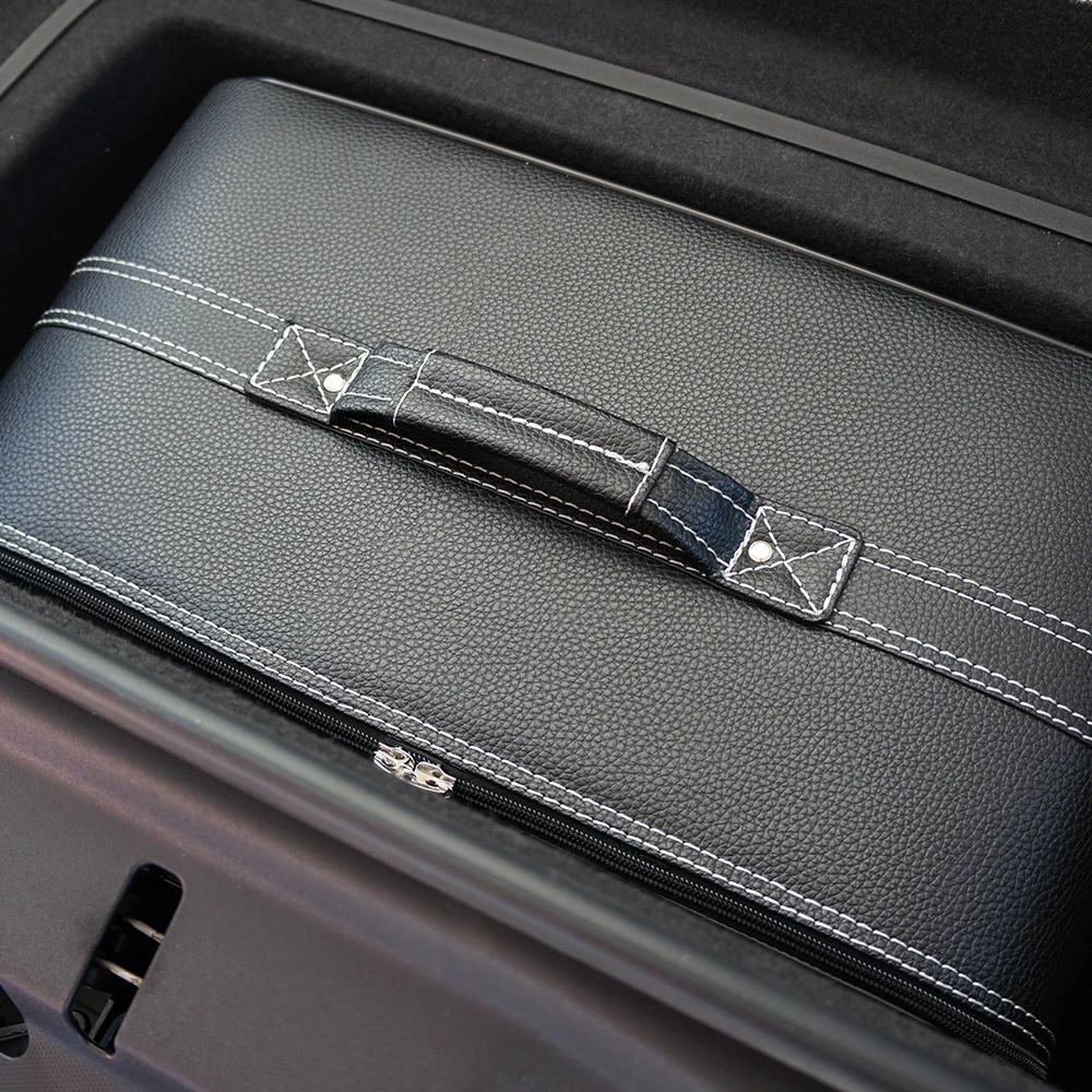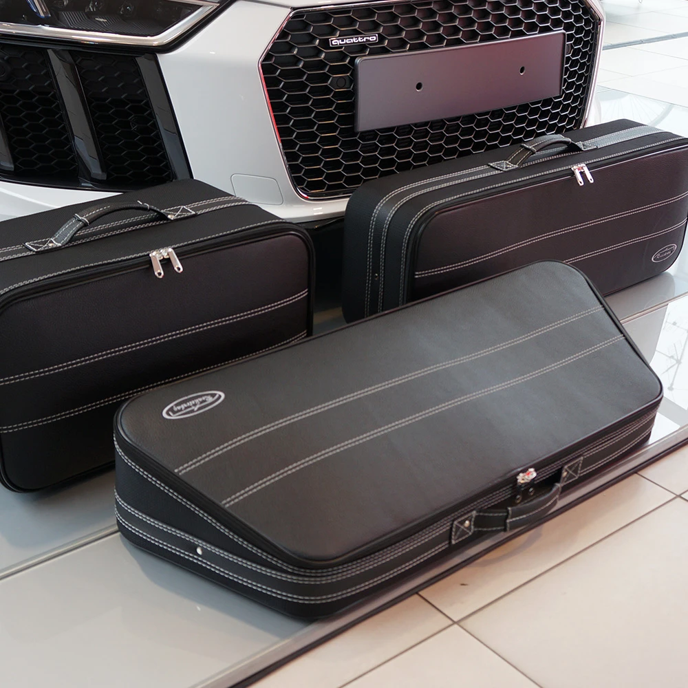 Dieses dreiteilige Kofferset ist die ideale Wahl, wenn Sie mit Ihrem Cabrio gerne Ausflüge mit großem Gepäck unternehmen. Die Koffer sind in Optik und Größe exakt auf den Stauraum in Ihrem Audi R8 Coupé abgestimmt. Widerstandsfähige Metall-Kunststoff-Verbundrahmen verleihen den Koffern Stabilität bei vergleichsweise geringem Eigengewicht. Die erstklassige Verarbeitung und ein hochwertiges Innenfutter aus edler Ancarra®-Mikrofaser garantieren einen stilsicheren und eleganten Auftritt.