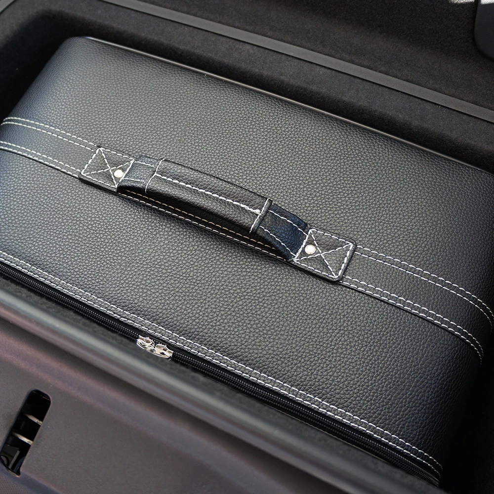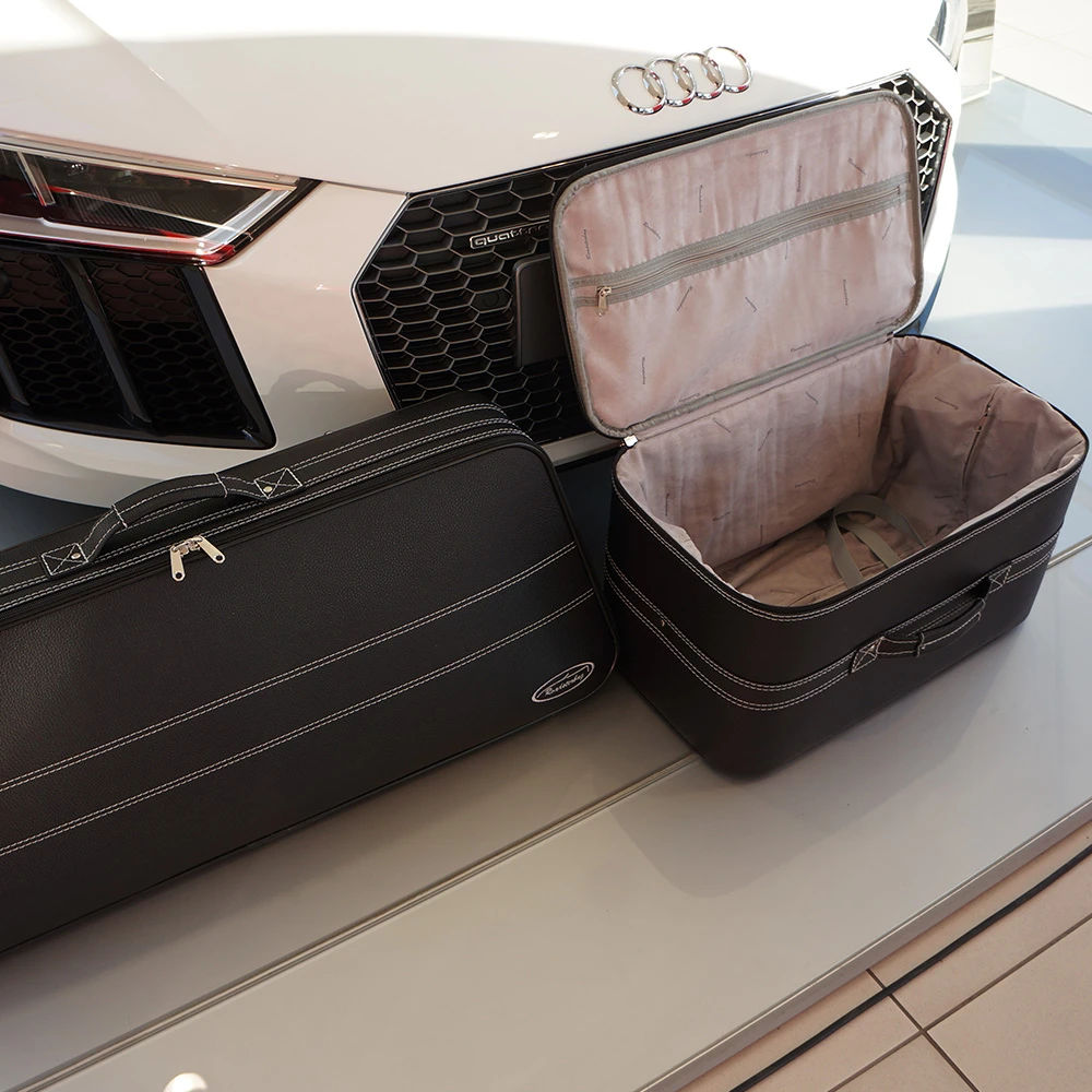 Das zweiteilige Kofferset ist die ideale Wahl, wenn Sie mit Ihrem Cabrio gerne Ausflüge mit großem Gepäck unternehmen. Die edlen Koffer sind in Optik und Größe exakt auf den Stauraum in Ihrem Audi R8 Spyder oder Roadster abgestimmt. Widerstandsfähige Metall-Kunststoff-Verbundrahmen verleihen dem Koffer Stabilität bei vergleichsweise geringem Eigengewicht. Die erstklassige Verarbeitung und ein hochwertiges Innenfutter aus edler Ancarra®-Mikrofaser garantieren einen stilsicheren und eleganten Auftritt.