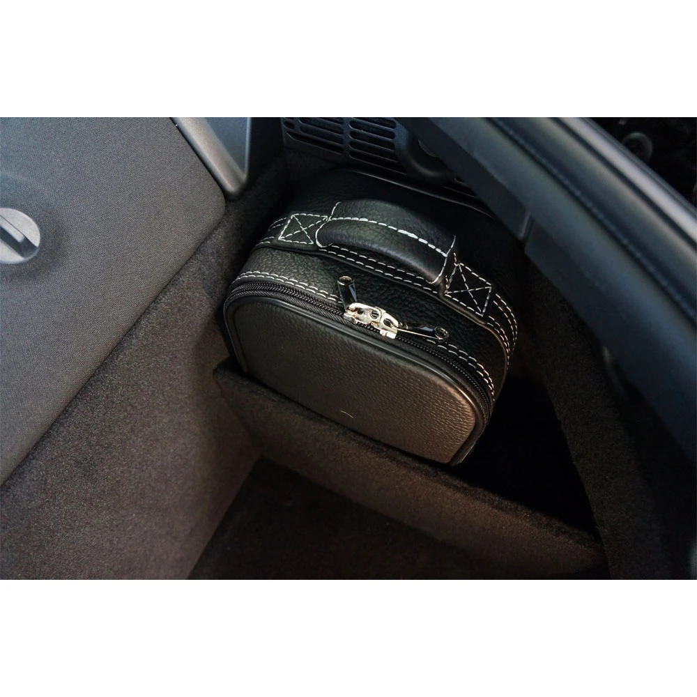 Dieses 5-teilige Kofferset aus edlem italienischem Leder wurde speziell für das BMW i8 Roadster Cabrio entwickelt und passt exakt in den Kofferraum, ohne Platz zu verschwenden. So können Sie immer mit maximalem Gepäck auch bei offenem Verdeck auf Tour gehen. Die Koffer verfügen über einen abschließbaren Deckel mit Innenfach (mit Reißverschluss) und Spannbänder für die Fixierung des Kofferinhaltes, damit bei der Reise nichts verrutscht. Der Leichtbau-Rahmen der Koffer sorgt für Stabilität und leichte Handhabung, das gestickte Logo, wählbare farbige Nähte und feines Innenfutter aus Ancarra®-Mikrofaser verleihen dem Set eine edle Optik.