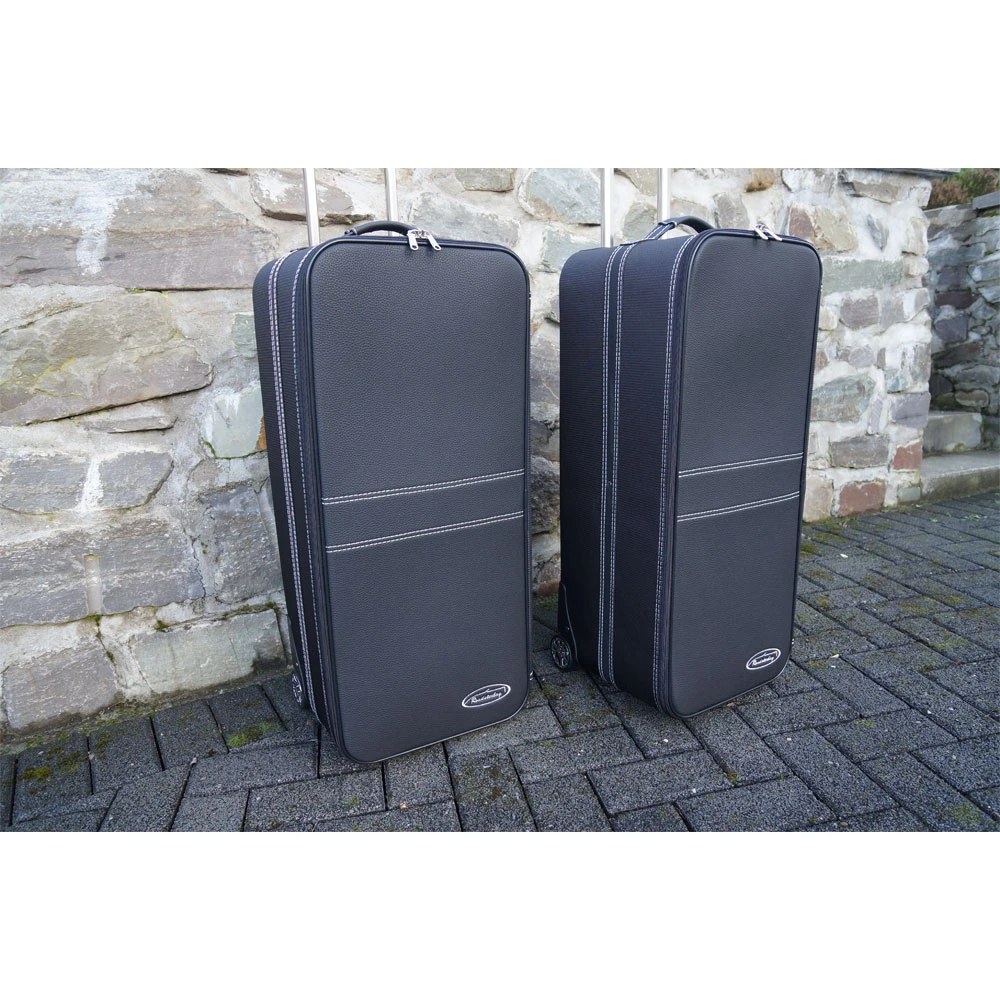 Dieses 2-teilige Kofferset wurde speziell für den BMW Z4 E85 M-Modell entwickelt und passt exakt in den Kofferraum, ohne Platz zu verschwenden. Ein Koffer passt unter den Verdeckkasten, der zweite Koffer ist höher und nutzt den tieferen Kofferraum optimal aus. So können Sie immer mit maximalem Gepäck auch bei offenem Verdeck auf Tour gehen. Die Trolleys verfügen über einen abschließbaren Deckel mit Innenfach (mit Reißverschluss) und Spannbänder für die Fixierung des Kofferinhaltes, damit bei der Reise nichts verrutscht. Mit dem voll versenkbarem Griff und den kugelgelagerten und verchromten Felgen mit extrabreiten Reifen lassen sich die Trolleys auch im vollen Zustand einfach fortbewegen. Der Leichtbau-Rahmen der Koffer sorgt für Stabilität und leichte Handhabung, das gestickte Logo, wählbare farbige Nähte und feines Innenfutter aus Ancarra®-Mikrofaser verleihen dem Set eine edle Optik.