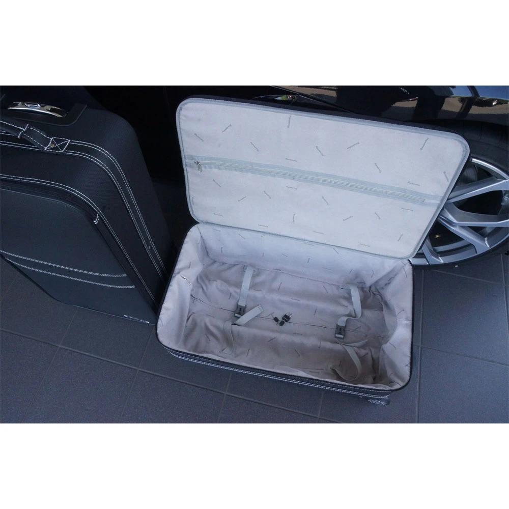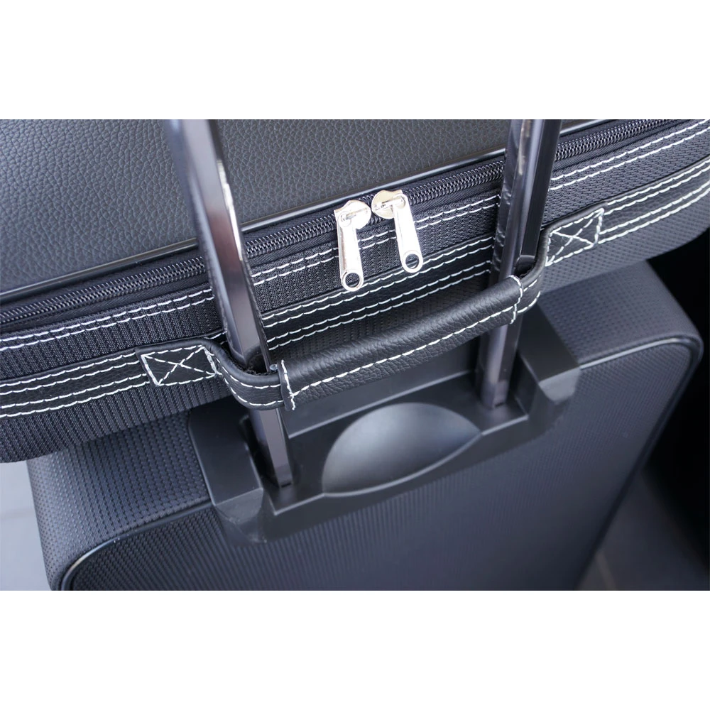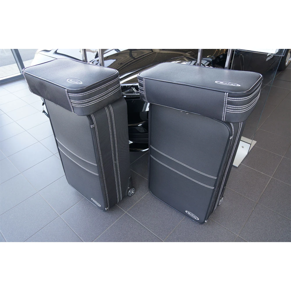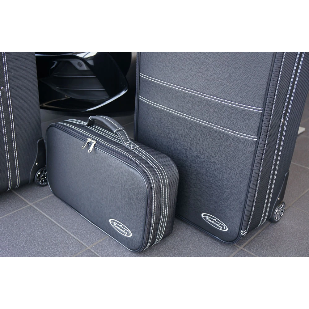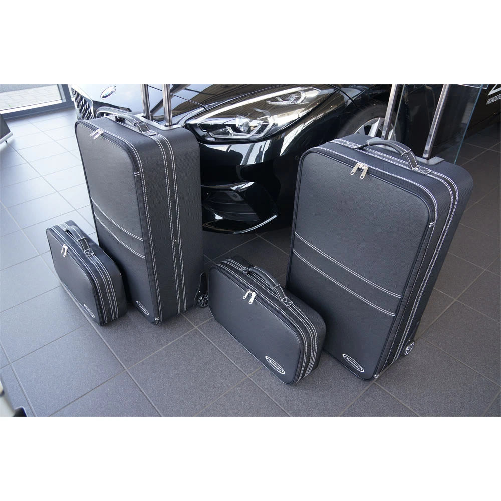 Dieses 4-teilige Kofferset wurde speziell für den BMW Z4 G29 entwickelt und passt exakt in den Kofferraum, ohne Platz zu verschwenden. So können Sie immer mit maximalem Gepäck auch bei offenem Verdeck auf Tour gehen. Die Trolleys verfügen über einen abschließbaren Deckel mit Innenfach (mit Reißverschluss) und Spannbänder für die Fixierung des Kofferinhaltes, damit bei der Reise nichts verrutscht. Mit dem voll versenkbarem Griff und den kugelgelagerten und verchromten Felgen mit extrabreiten Reifen lassen sich die Trolleys auch im vollen Zustand einfach fortbewegen. Der Leichtbau-Rahmen der Koffer sorgt für Stabilität und leichte Handhabung, das gestickte Logo, wählbare farbige Nähte und feines Innenfutter aus Ancarra®-Mikrofaser verleihen dem Set eine edle Optik. Die kleinen Taschen stecken Sie auf den Teleskopgriff der Trolleys auf, so wird das Handling von so vielen Koffern zum Kinderspiel.