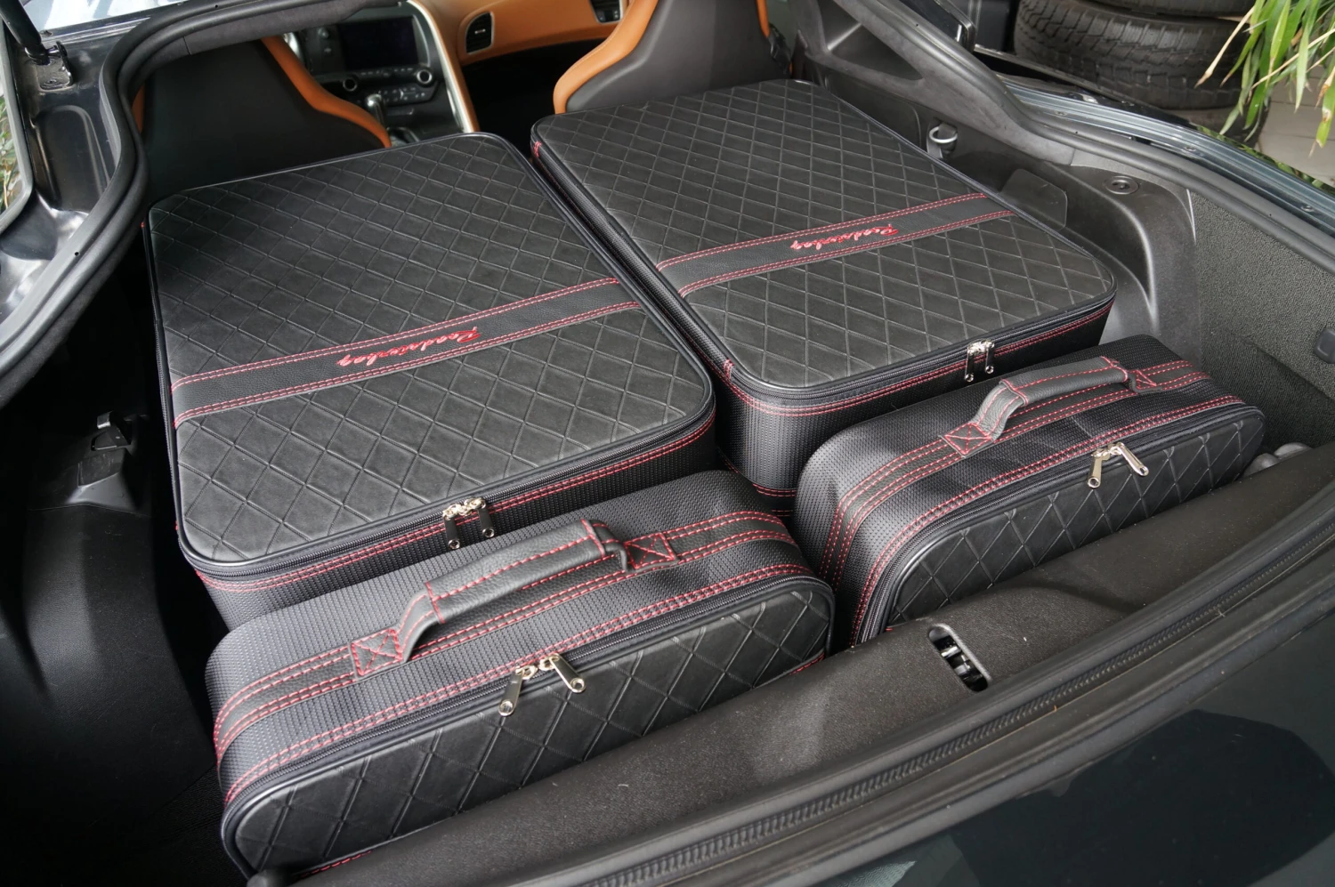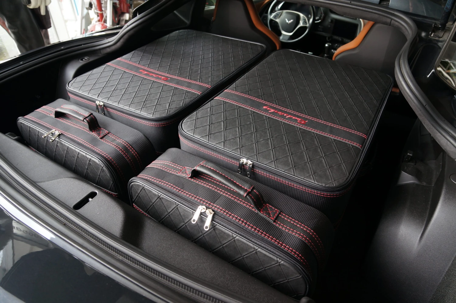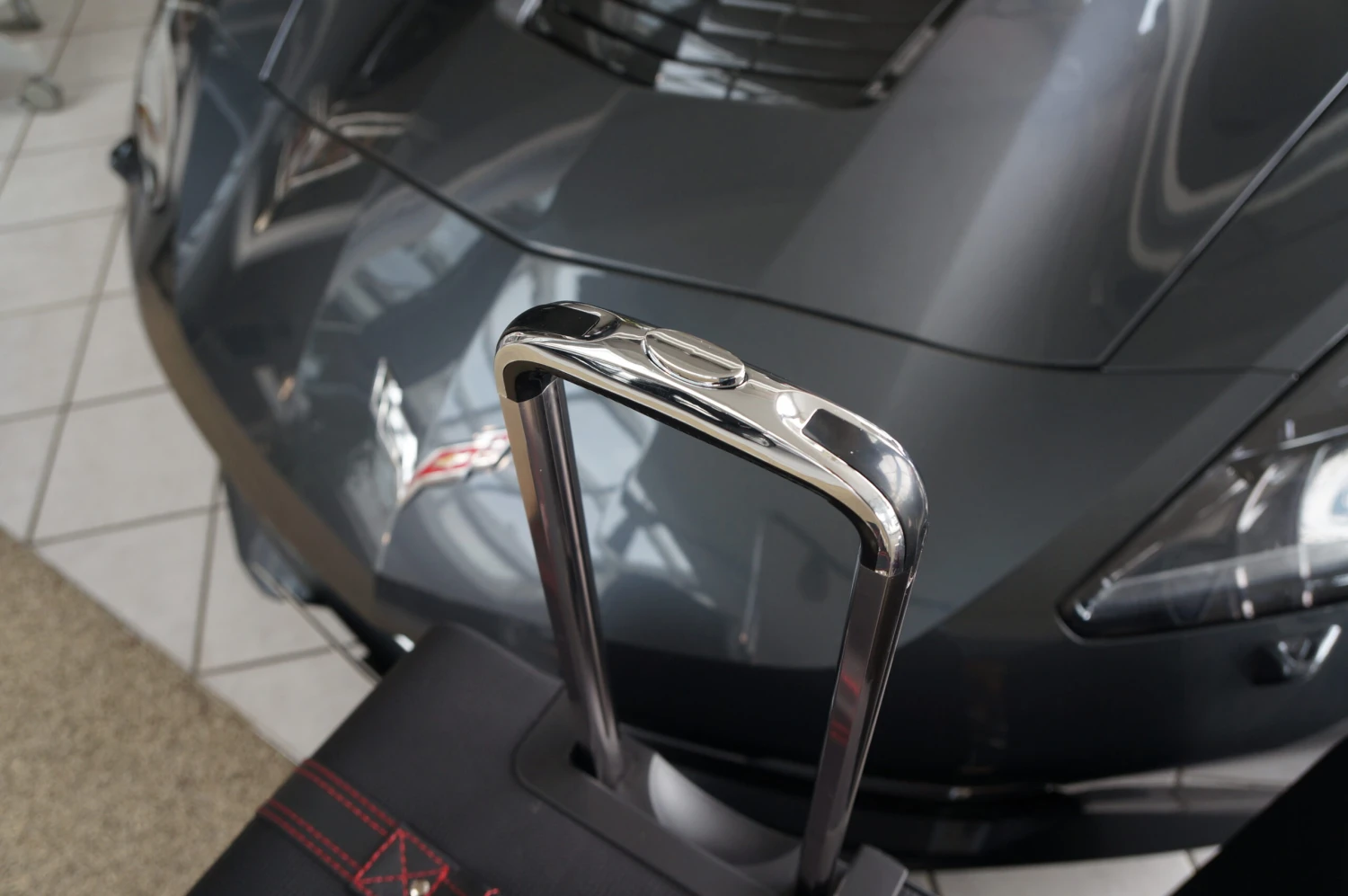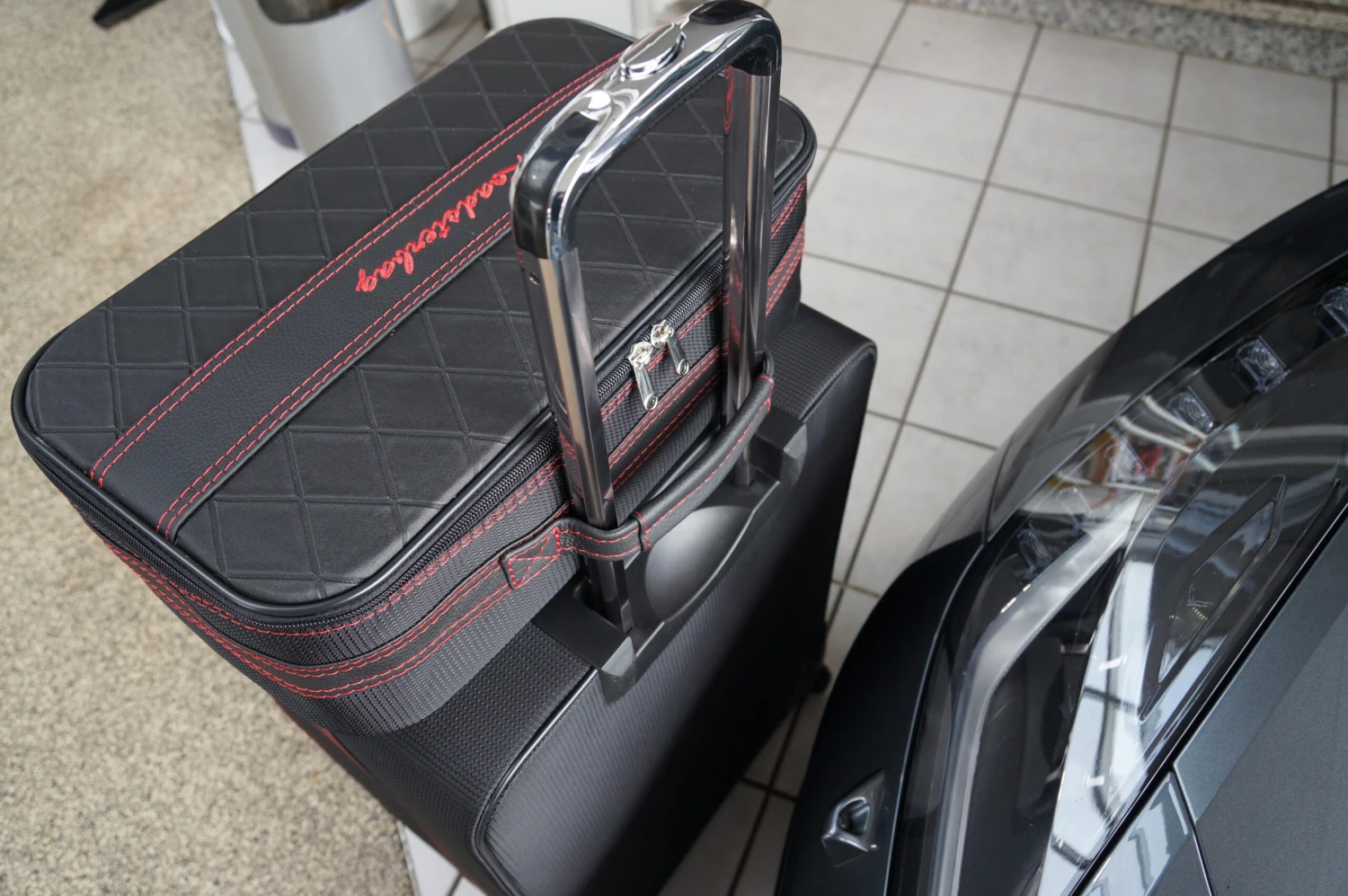 Dieses vierteilige Kofferset von Roadsterbag ist speziell auf den Kofferraum des Chevrolet Corvette C7 Coupé zugeschnitten. Die Trolleys und die passenden Koffer nutzen den vorhandenen Stauraum optimal aus. Die Trolleys sind mit voll versenkbarem Griff, silikongedämpften, verchromten Laufrollen, Kugellagerung und Inside-Trolley-Technik aus leichtem Aluminium ausgestattet. Die erstklassige Verarbeitung und das hochwertige Innenfutter aus edler Ancarra-Mikrofaser verleihen dem Set eine edle Optik, die sich nahtlos in das Innendesign Ihres Wagens einfügt. Dank bequemer Tragegriffe und stabilem Rollensystem lassen sich die Gepäckstücke komfortabel transportieren.