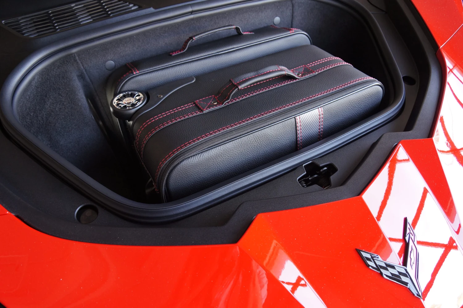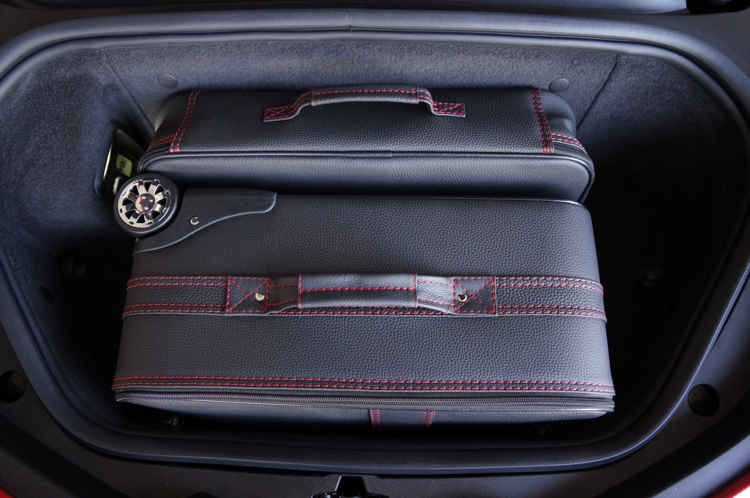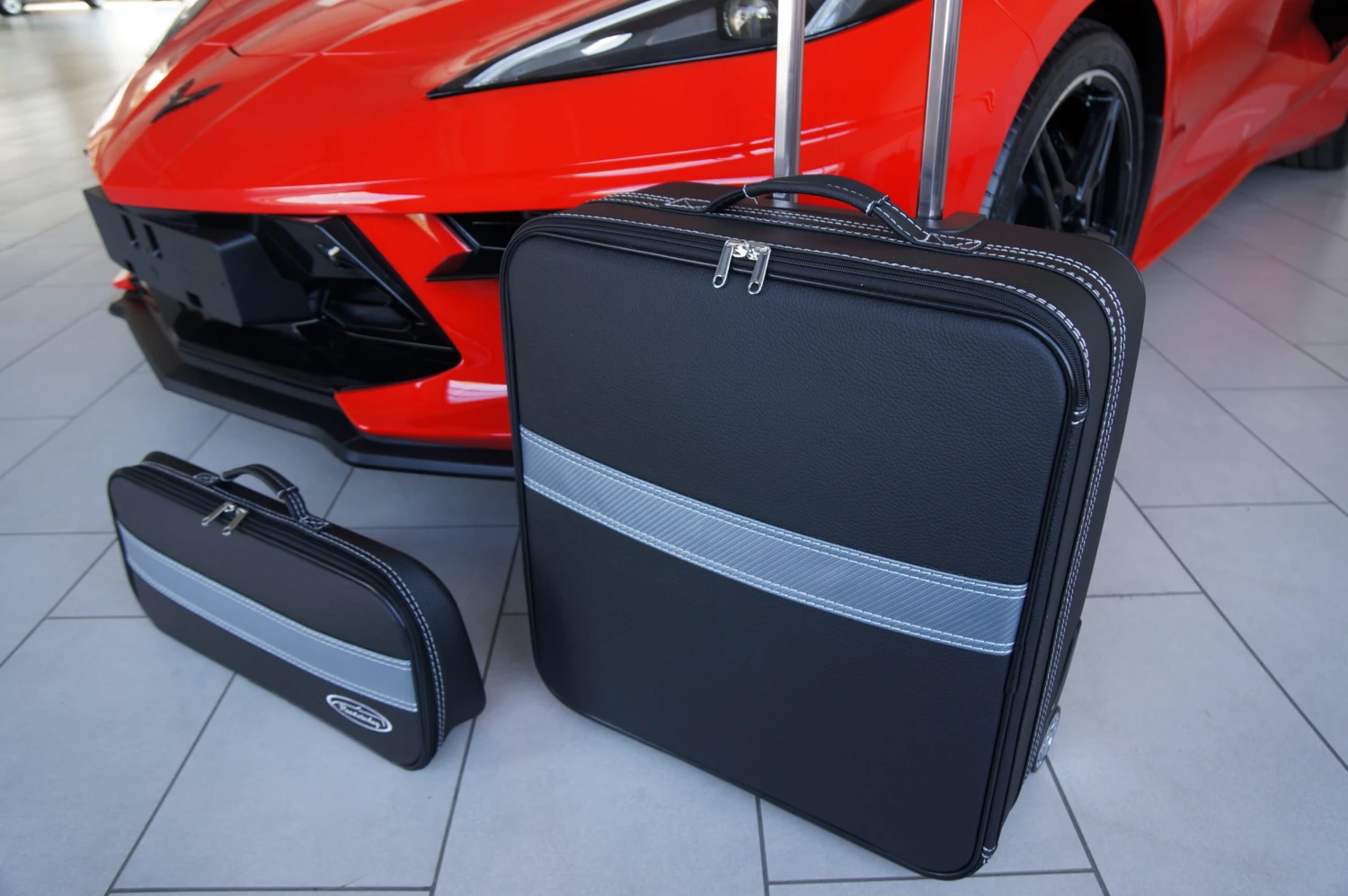 Dieses zweiteilige Kofferset von Roadsterbag ist speziell auf den vorderen Kofferraum des Chevrolet Corvette C8 zugeschnitten. Der Trolley und der passende Koffer nutzen den vorhandenen Stauraum optimal aus. Der Trolley ist mit voll versenkbarem Griff, silikongedämpften, verchromten Laufrollen, Kugellagerung und Inside-Trolley-Technik aus leichtem Aluminium ausgestattet. Die erstklassige Verarbeitung und das hochwertige Innenfutter aus edler Ancarra-Mikrofaser verleihen dem Set eine edle Optik, die sich nahtlos in das Innendesign Ihres Wagens einfügt. Dank bequemer Tragegriffe und stabilem Rollensystem lassen sich die Gepäckstücke komfortabel transportieren.