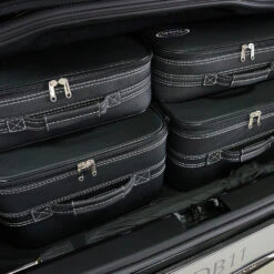 Dieses dreiteilige Kofferset von Roadsterbag ist speziell auf den hinteren Kofferraum des Chevrolet Corvette C8 zugeschnitten und ergänzt das zweiteilige Kofferset für den Frontkofferraum. Die Taschen nutzen den vorhandenen Stauraum optimal aus. Die erstklassige Verarbeitung und das hochwertige Innenfutter aus edler Ancarra-Mikrofaser verleihen dem Set eine edle Optik, die sich nahtlos in das Innendesign Ihres Wagens einfügt. Dank bequemer Tragegriffe lassen sich die Gepäckstücke komfortabel transportieren.