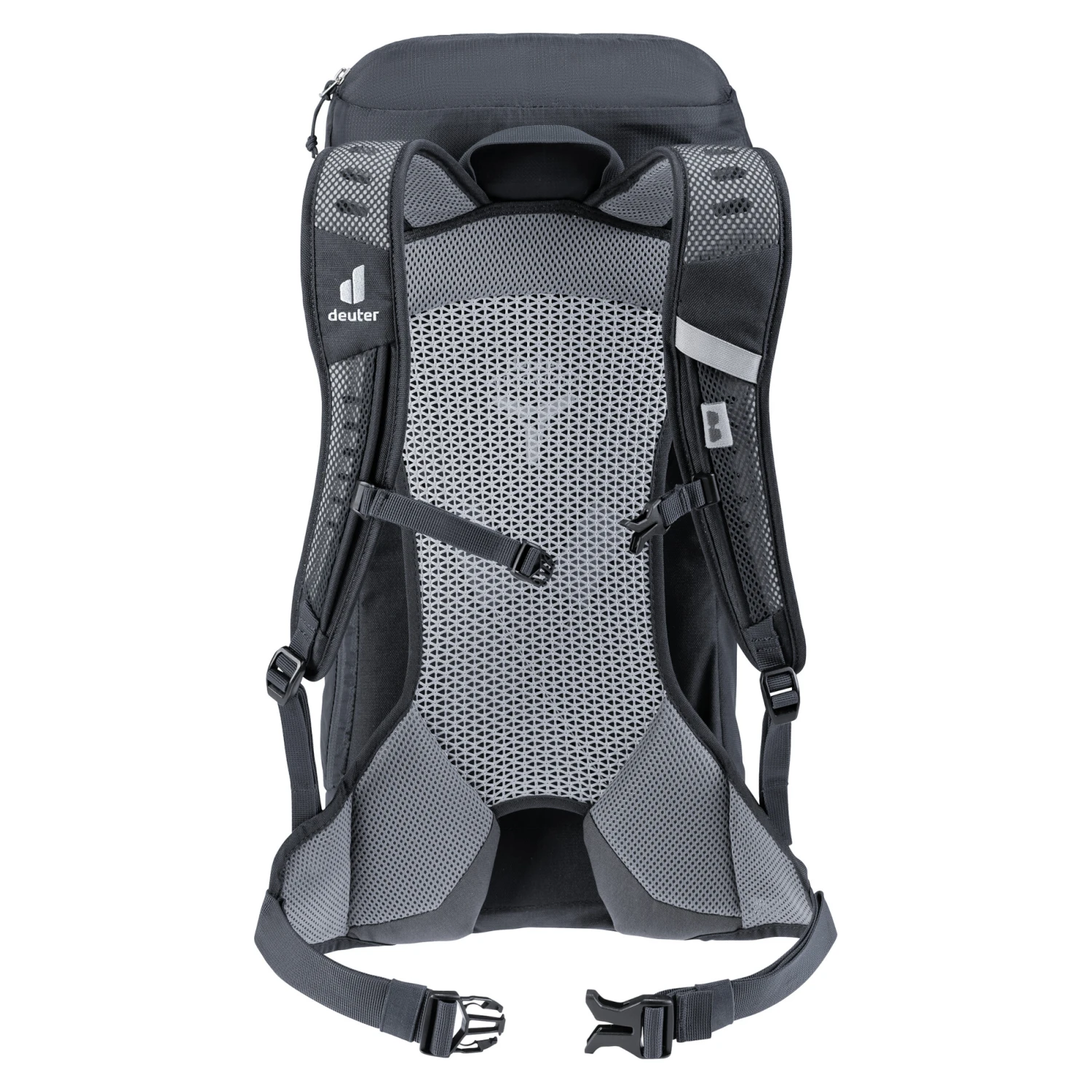 Der bequeme Deuter Rucksack AC Lite 16 für Tagesausflüge mit federleichtem, maximal belüftetem Aircomfort-Rückensystem bietet nicht nur eine sehr gute Gewicht-Komfort-Ratio, sondern besitzt auch ein geräumiges Hauptfach. Die große Reißverschluss-Frontöffnung ermöglicht nicht nur einen unkomplizierten Zugriff auf den Inhalt des Rucksacks, sondern auch ein einfaches und schnelles Packen. Dank der Reißverschluss-Garage ist der Rucksack dennoch vor unfreiwilligen Zugriffen sicher verwahrt. Weitere Verstaumöglichkeiten bieten die Smartphone-Tasche, die Deckelfächer und die Schlaufen zur Befestigung von Jacken und anderen Gegenständen außen am Rucksack. Er ist Helmnetz- und Trinksystem-kompatibel (bis 2 L) und hat eine abnehmbare Regenhülle.