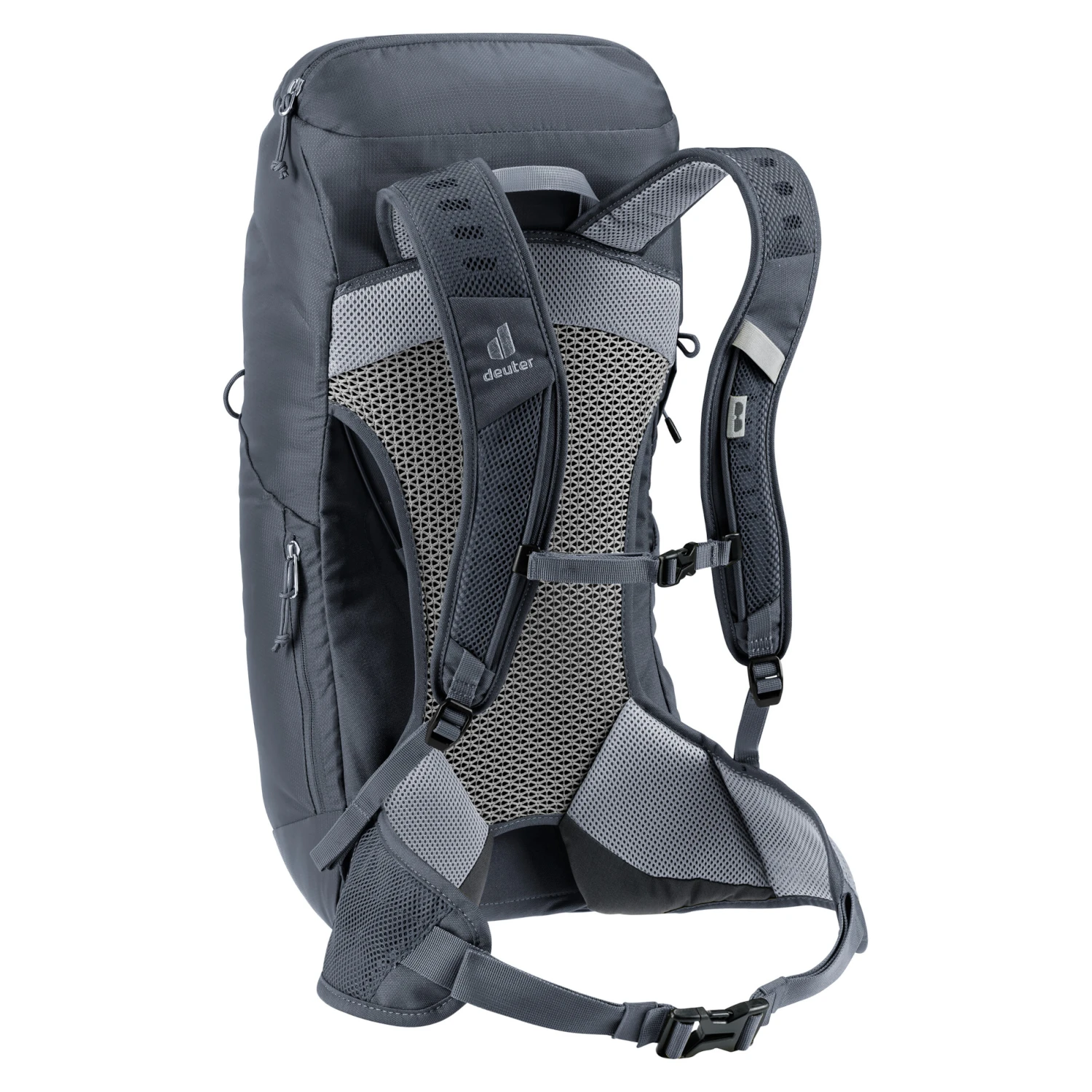 Der bequeme Deuter Rucksack AC Lite 24 für Tagesausflüge mit federleichtem, maximal belüftetem Aircomfort-Rückensystem bietet nicht nur eine sehr gute Gewicht-Komfort-Ratio, sondern besitzt auch ein geräumiges Hauptfach. Die große Reißverschluss-Frontöffnung ermöglicht nicht nur einen unkomplizierten Zugriff auf den Inhalt des Rucksacks, sondern auch ein einfaches und schnelles Packen. Dank der Reißverschluss-Garage ist der Rucksack dennoch vor unfreiwilligen Zugriffen sicher verwahrt. Weitere Verstaumöglichkeiten bieten die Smartphone-Tasche, die Deckelfächer und die Schlaufen zur Befestigung von Jacken und anderen Gegenständen außen am Rucksack. Er ist Helmnetz- und Trinksystem-kompatibel (bis 2 L) und hat eine abnehmbare Regenhülle.