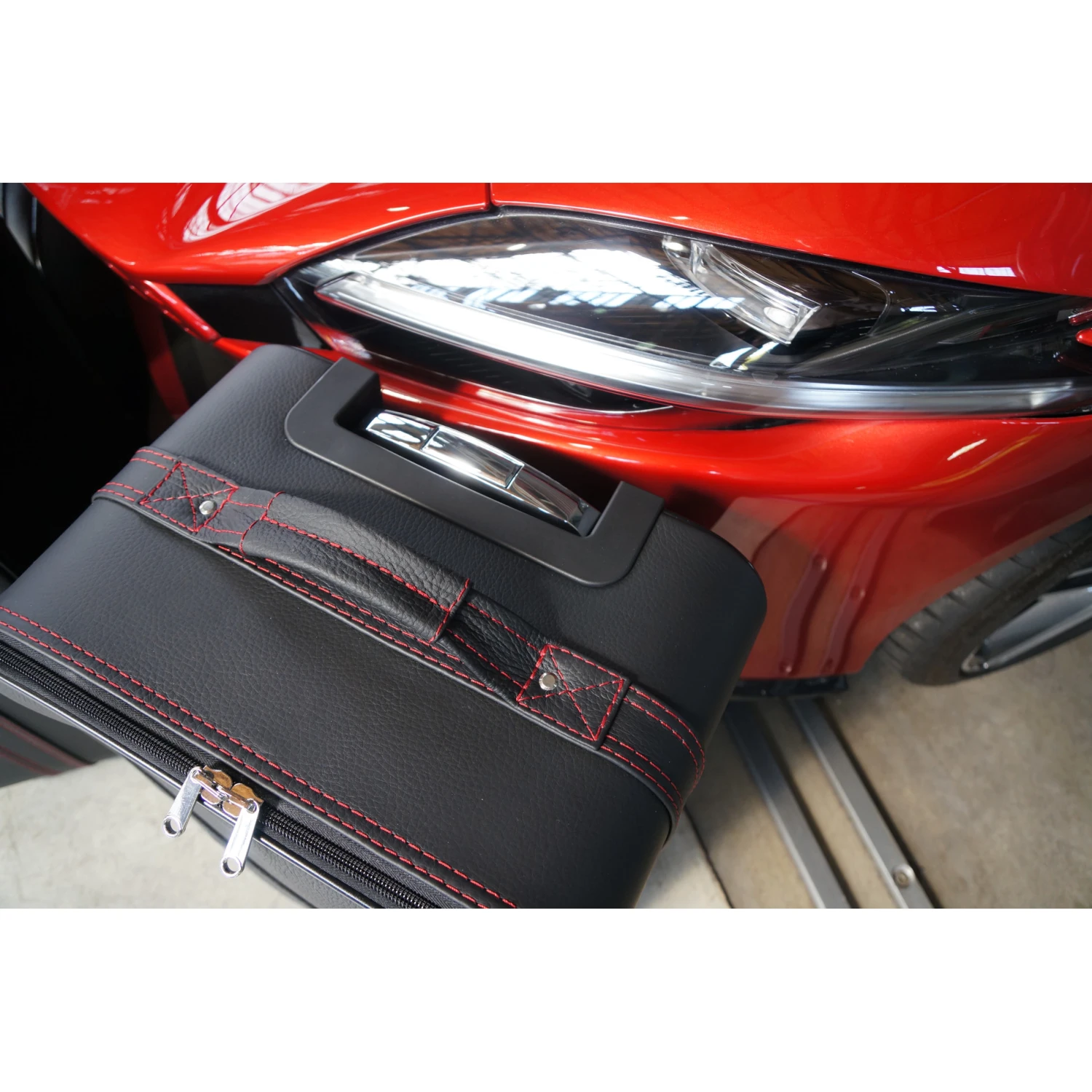 Dieses dreiteilige Kofferset von Roadsterbag ist speziell auf den Kofferraum des Ferrari Roma zugeschnitten. Der Trolley und die passenden Koffer nutzen den vorhandenen Stauraum optimal aus. Der Trolley ist mit voll versenkbarem Griff, silikongedämpften, verchromten Laufrollen, Kugellagerung und Inside-Trolley-Technik aus leichtem Aluminium ausgestattet. Die erstklassige Verarbeitung und das hochwertige Innenfutter aus edler Ancarra-Mikrofaser verleihen dem Set eine edle Optik, die sich nahtlos in das Innendesign Ihres Wagens einfügt. Dank bequemer Tragegriffe lassen sich die Gepäckstücke komfortabel transportieren.