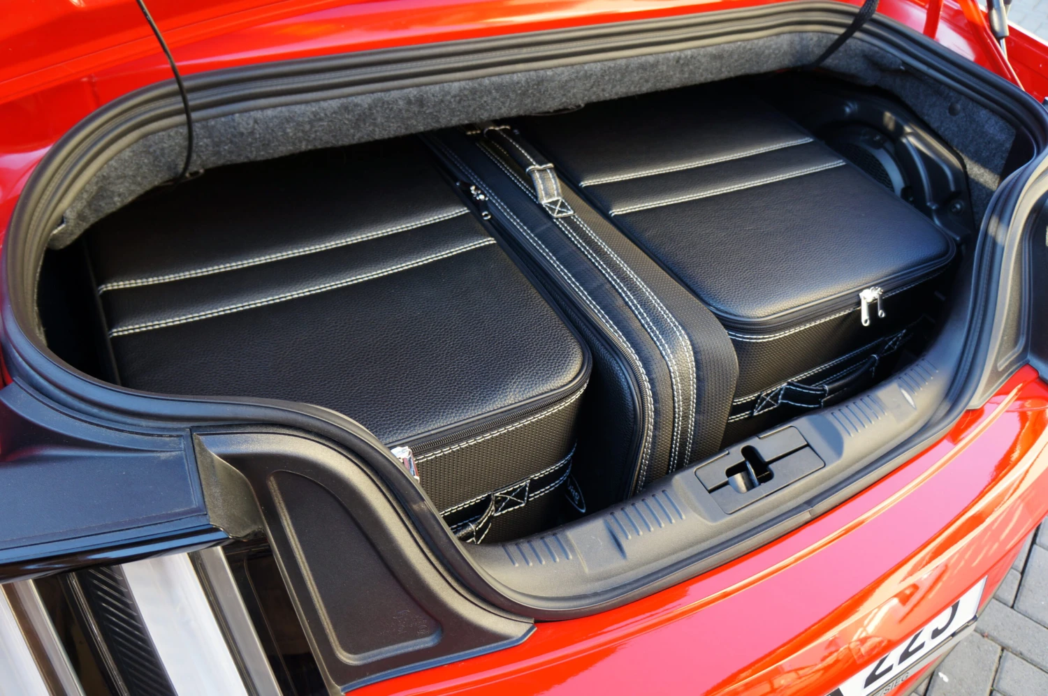 Dieses dreiteilige Kofferset von Roadsterbag ist speziell auf den Kofferraum des Ford Mustang VI Cabrio (ab 2014) zugeschnitten und kann mit einem zweiteiligen Zusatzkofferset ergänzt werden. Der Trolley ist mit voll versenkbarem Griff, silikongedämpften, verchromten Laufrollen, Kugellagerung und Inside-Trolley-Technik aus leichtem Aluminium ausgestattet. Die erstklassige Verarbeitung und das hochwertige Innenfutter aus edler Ancarra-Mikrofaser verleihen dem Set eine edle Optik, die sich nahtlos in das Innendesign Ihres Wagens einfügt. Dank bequemer Tragegriffe lassen sich die Gepäckstücke komfortabel transportieren.