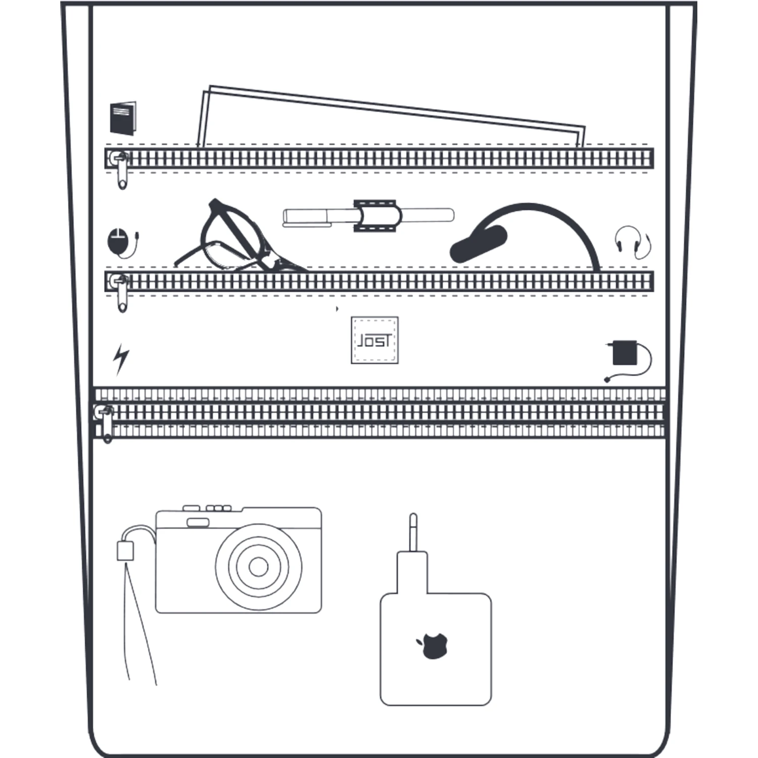 Der MALMÖ Kurierrucksack vereint Stil und Funktion. Hergestellt aus hochwertigem Vollrindleder, ist er strapazierfähig und luxuriös. Mit sechs Innenfächern, darunter gepolsterte Laptop- und Tabletfächer, bleibst du organisiert. Reflektierende Details sorgen für Sicherheit bei schlechtem Licht, und das recycelte Polyesterfutter und wasserabweisende Reißverschlüsse machen den Rucksack umweltfreundlich und wetterfest. Perfekt für unterwegs mit Maßen von 44 x 30 x 10 cm kann der Rucksack mit dem passenden Gurt auf der Rückseite auch auf deinen Koffer aufgesteckt werden.