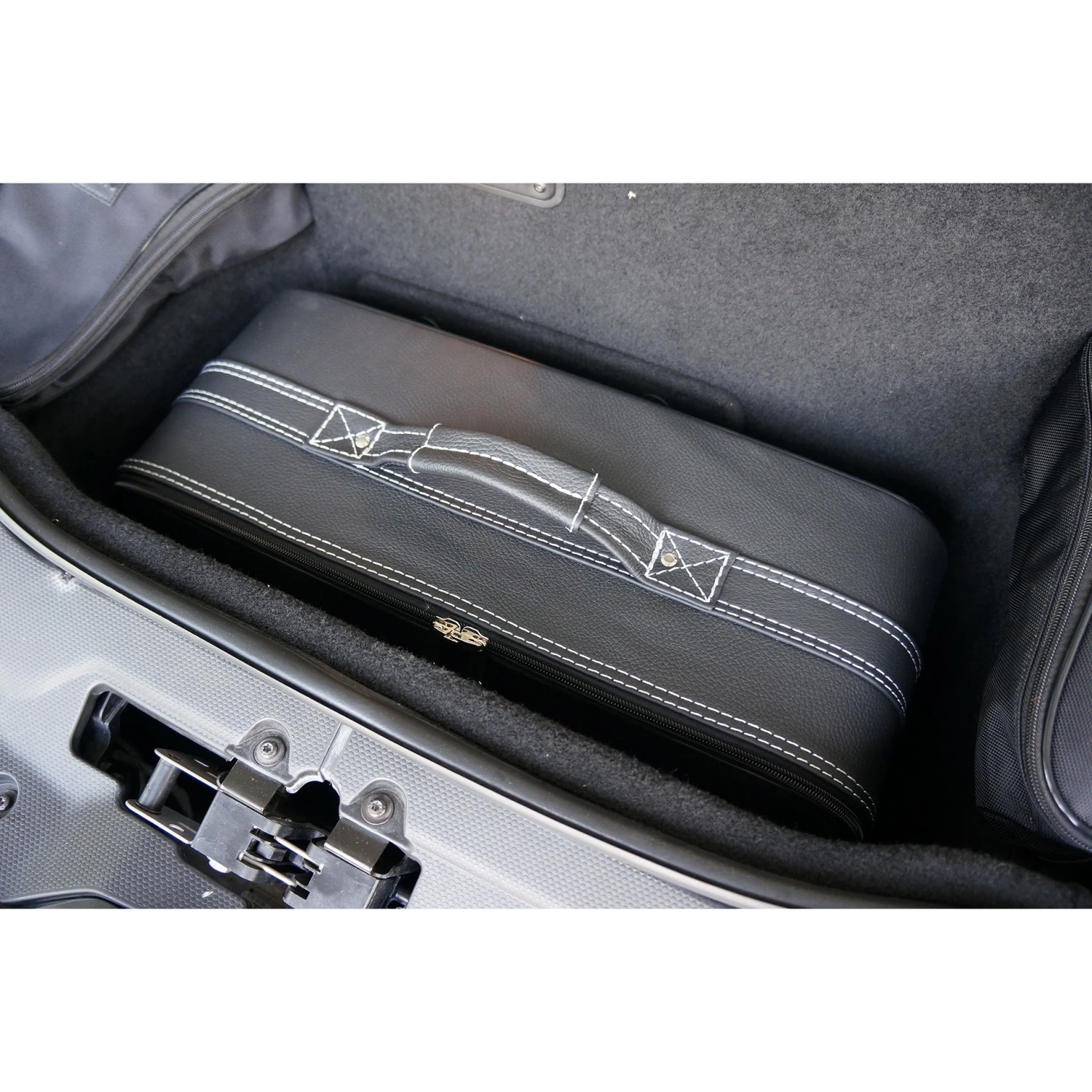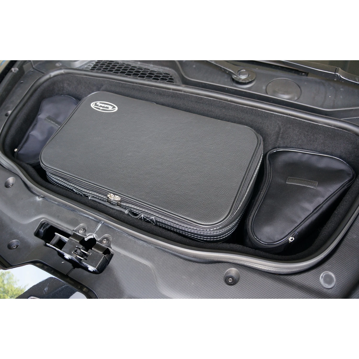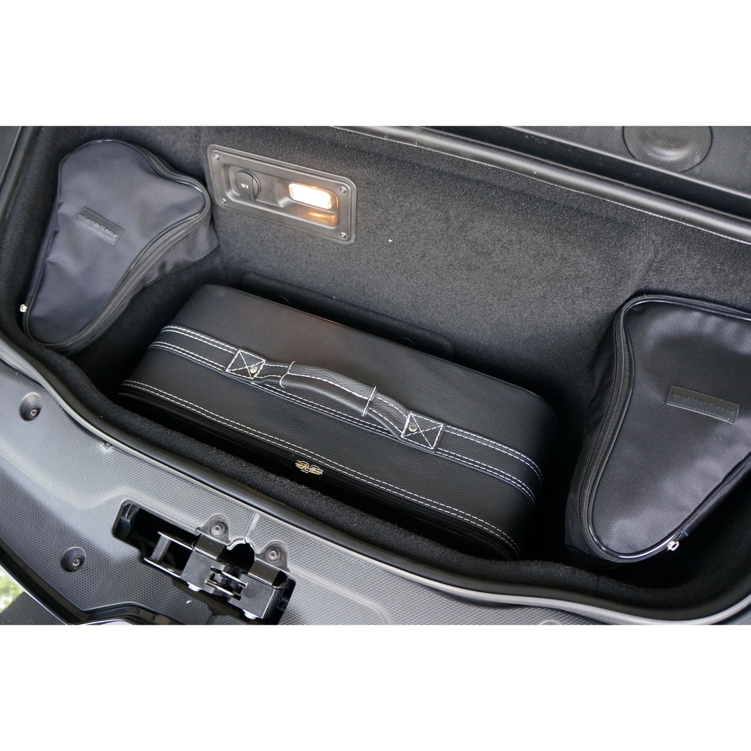 Dieses zweiteilige Kofferset von Roadsterbag ist speziell auf den Kofferraum des Lamborghini Huracán Spyder zugeschnitten. Die Koffer nutzen den vorhandenen Stauraum optimal aus. Die erstklassige Verarbeitung und das hochwertige Innenfutter aus edler Ancarra-Mikrofaser verleihen dem Set eine edle Optik, die sich nahtlos in das Innendesign Ihres Wagens einfügt. Dank bequemer Tragegriffe lassen sich die Gepäckstücke komfortabel transportieren.