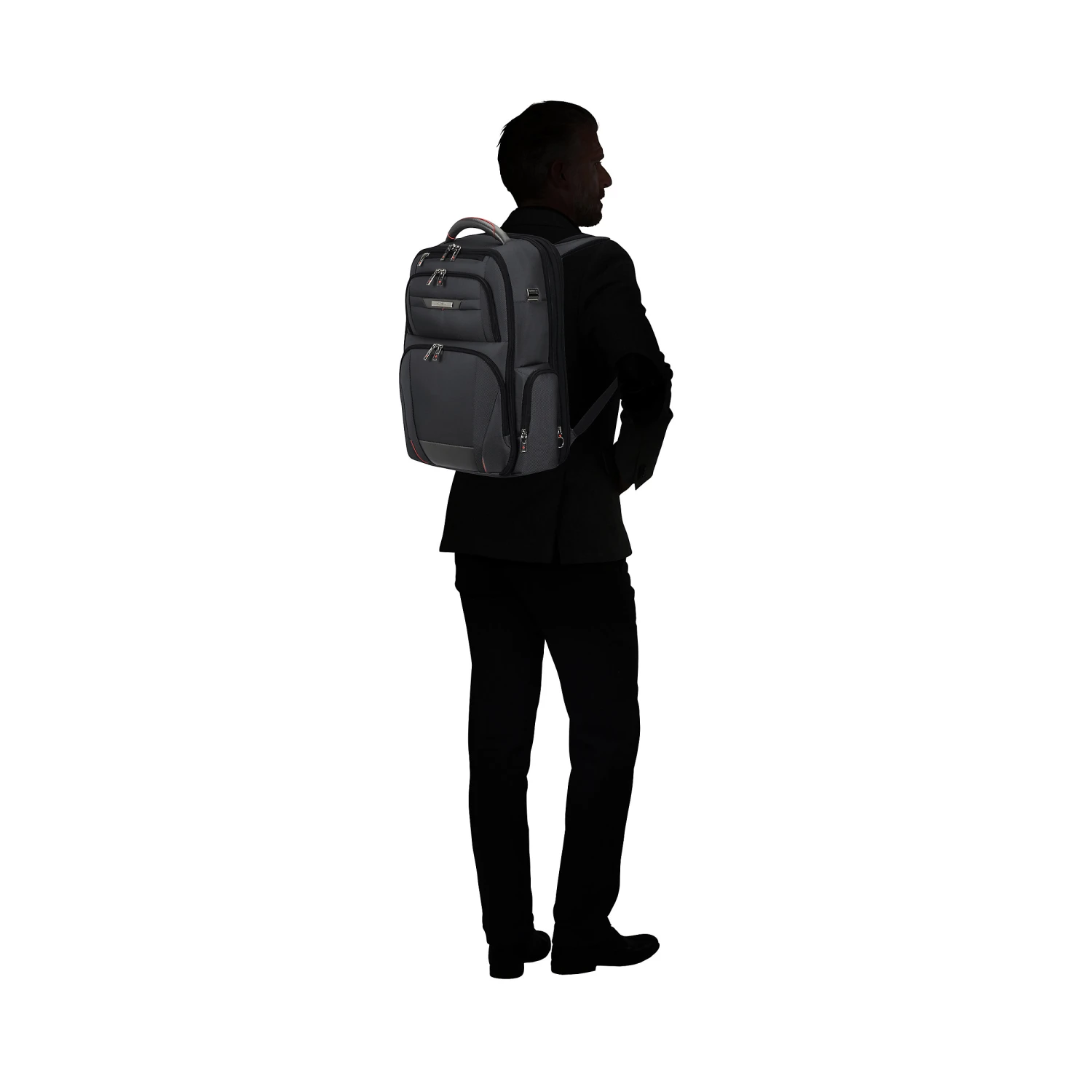 Mit der großen, erweiterbaren Variante des 3V Laptoprucksacks aus Samsonites Pro-DLX5-Businesskollektion legen Sie stets einen professionellen Auftritt hin, den dieser funktionale Rucksack bietet für alles im Arbeitsalltag den richtigen Platz, von Arbeitsunterlagen bis hin zu empfindlicher Elektronik. In einem separaten, rückennahen Fach lassen sich beispielsweise ein Laptop bis zu 17,3″ und ein Tablet oder ein E-Reader sicher verstauen. Dank Easy Pass-Kabelorganisation lassen sich die elektronischen Geräte sogar direkt in der Tasche aufladen. Akten im DIN A4-Format bringen Sie mühelos im übersichtlichen Hauptfach unter und auf der Front halten gleich zwei umfangreich ausgestattete Organizerfächer alles Wichtige schnell griffbereit – von Schreibutensilien bis zur Visitenkarte. Darüber hinaus präsentiert sich der smarte Businessrucksack voll auf der Höhe des technologischen Zeitalters und ist beispielsweise mit einem speziellen Powerbank-Fach und einem Reißverschlussfach mit integriertem RFID-Schutz ausgestattet. Zudem ist dank weicher Rückenpolsterung und ergonomischen Schultergurten stets bestens für den nötigen Tragekomfort gesorgt. Sie sind häufiger geschäftlich auf Reisen? Der 3V Laptoprucksack lässt sich mit einem praktischen Trolley Sleeve auch komfortabel auf Ihrem Trolley befestigen.