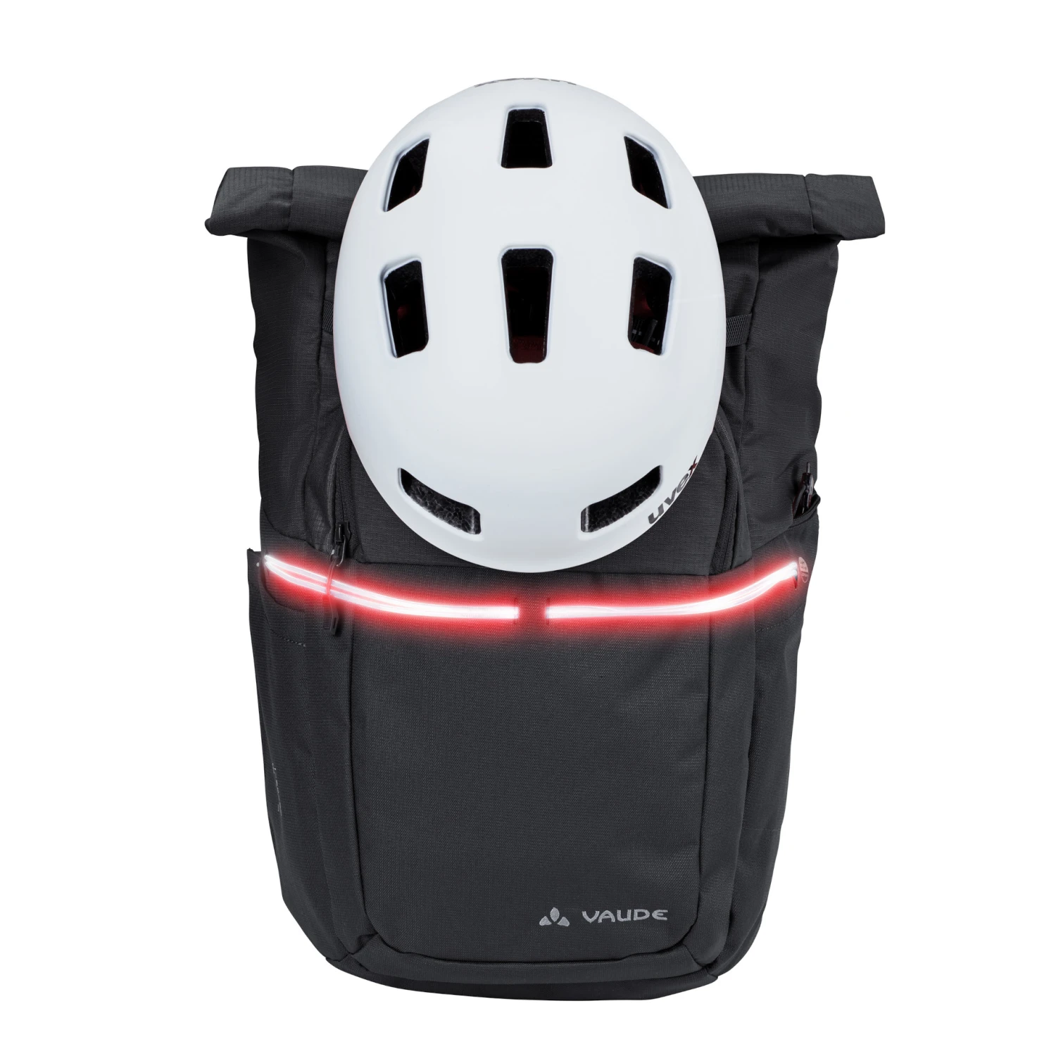 Viel Rucksack für wenig Geld – der geräumige Rollverschluss-Daypack Okab II steckt mit seinen 25 l Volumen einiges weg. Ein 13,3″ oder schmales 15″ Laptop findet im gepolsterten Hauptfach Platz. In Haupt- und Frontfach sorgen übersichtliche Organizer für Ordnung, Getränk und Powerbank können in den Seitenfächern verstaut werden. Der Okab II ist darüber hinaus ein „LED ready“-Produkt und lässt sich daher mit dem Light me up Kit von VAUDE ausstatten – einem innovativen Lichtleiter, welcher in Kombination mit einer herkömmlichen Powerbank zum Leuchten gebracht wird.
